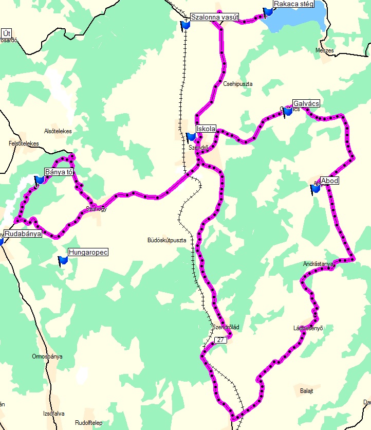 évekből megismert Rudabánya irányába tartó szakasszal. Az útvonal nagy része