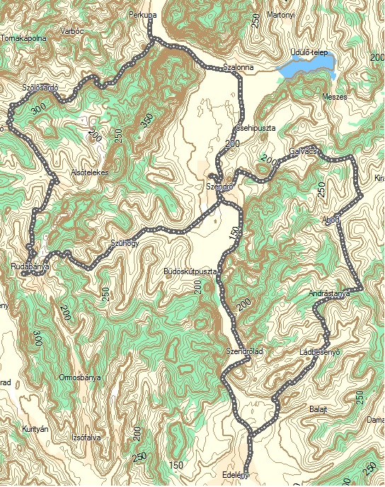 Megjegyzés: A túrába a Szalonna és a Perkupa közötti szakasz nem