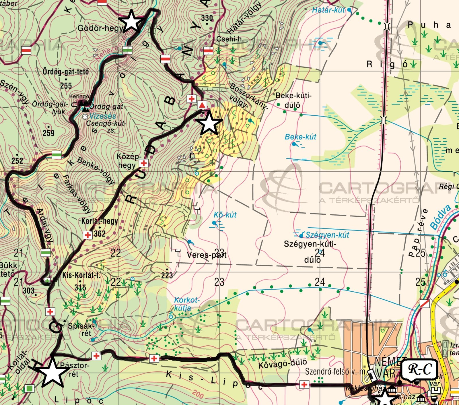 Szendrői Általános Iskola ⇒ Kálvária ⇒ Korlát-hegy ⇒ Ördög-gát bejárat ⇒ Lipóc ⇒ Szendrői Általános Iskola