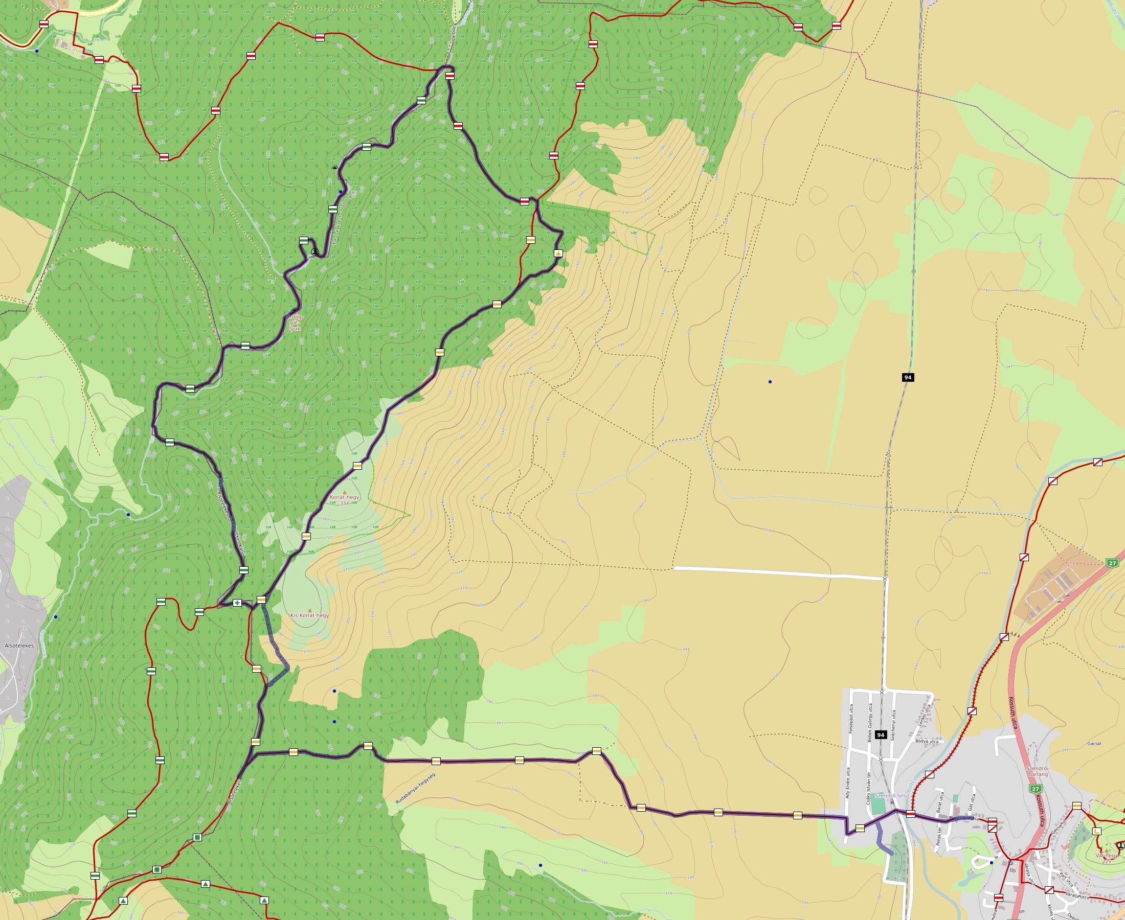 Szendrői Általános Iskola ⇒ Kálvária ⇒ Korlát-hegy ⇒ Ördög-gát bejárat ⇒ Lipóc ⇒ Szendrői Általános Iskola